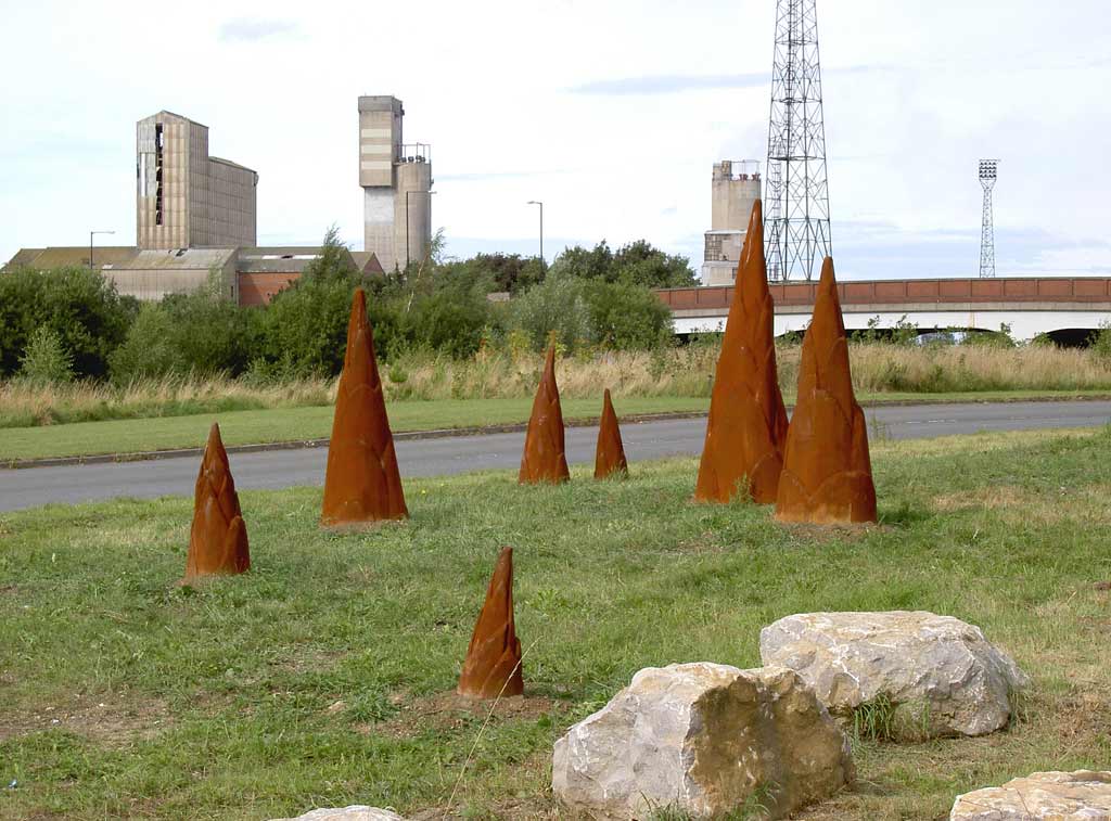 Portrack Meadows Wildlife Park Entrance Feature. Stockton-on-Tees. Core Ten Steel, Seven pieces up to 2.7m high, 2005.