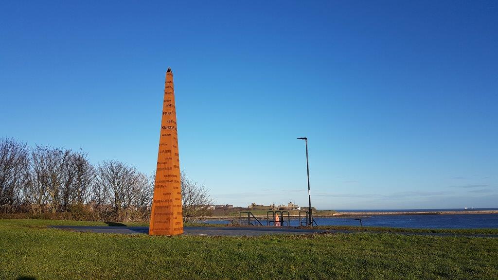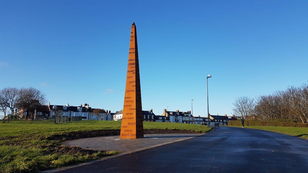 The Beacon Artwork takes its shape from the nearby Lawe Top Beacons built in 1832 as navigational aids for ships sailing into the Tyne. The new Beacon takes the slender shape of the original Beacons and reinterprets this with the addition of text and light. In this way it is a contemporary reinterpretation of this traditional and iconic design.